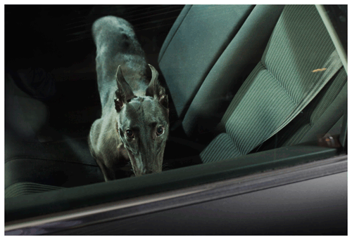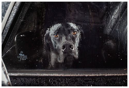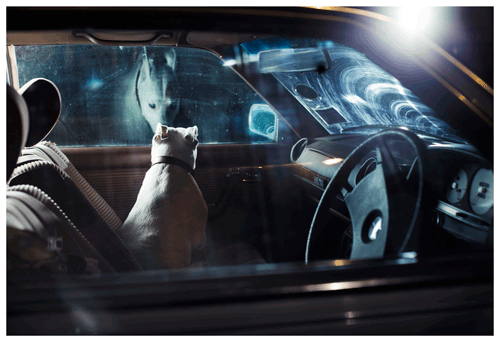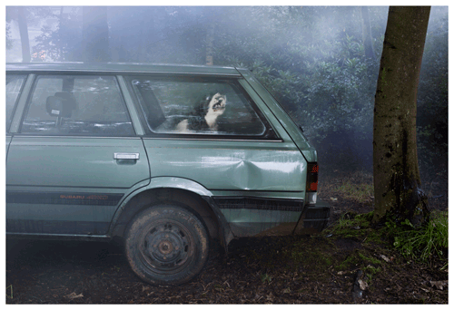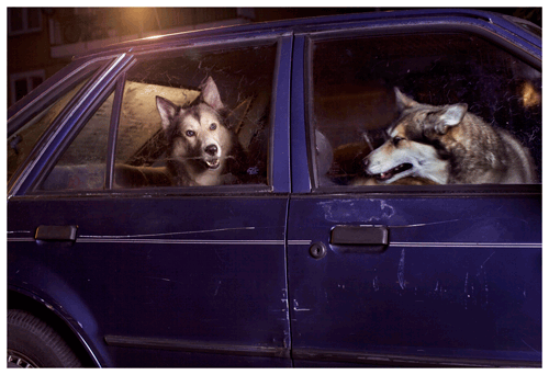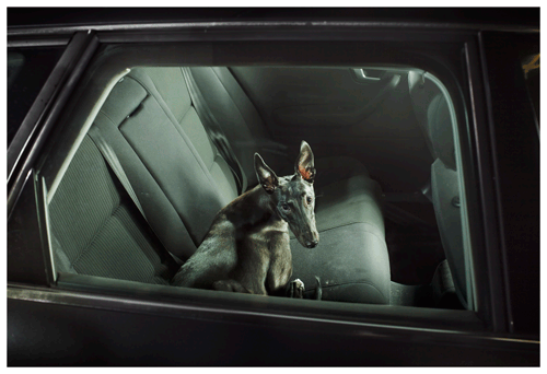 I was once left in a car at a young age. I don't know when or where or for how long, possibly at the age of four, perhaps outside a supermarket, probably for fifteen minutes only. The details don't matter. The point is that I wondered if anyone would come back: in a child's mind it is possible to be alone forever. Around the same age I developed a deep affinity with animals - in particular their plight at the hands of humans. I remember watching TV and seeing footage of a dog being put in a plastic bag and being kicked. What appalled me most was that the dog could not speak back. It's muteness terrified me. It is clear that both these experiences arose from the same place deep inside me: a fear of being alone and unheard. The images in this series explore that feeling, both in relation to myself and to animals in general. The camera is the perfect tool for capturing silence and longing: the shutter preserves the subject like a creature pickled behind glass. In this instance two layers of glass are placed between the viewer and the viewed: the glass of the lens and the glass of the car window. The dog is truly alone. When I started this project I knew the photos would be dark. What I didn't expect was to see so many subtle reactions by the dogs: some sad, some expectant, some angry, some dejected. It was as if upon opening up a box of grey-coloured pencils I was surprised to see so many shades inside. I hope that these pictures are engaging and perhaps a little amusing. I want to show that there is life in the dark places within us. I will stop writing now and you can stop reading. Words can only get us so far. After all, we are all animals