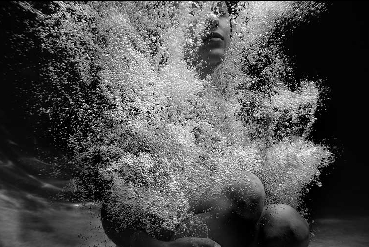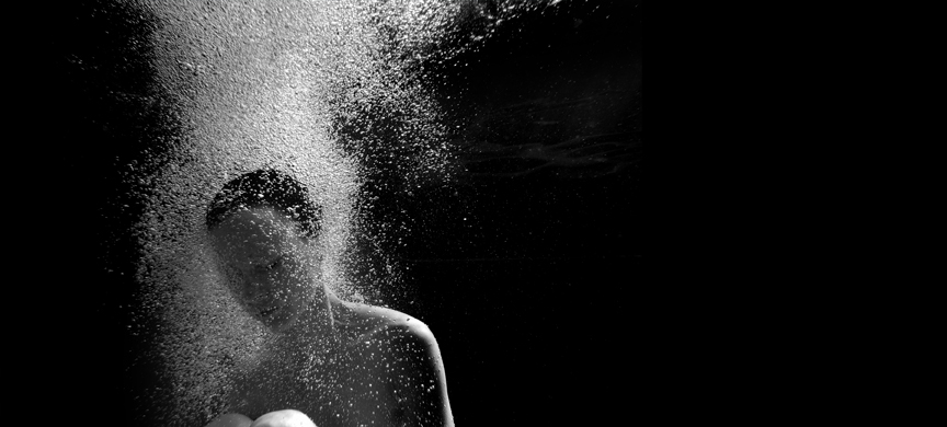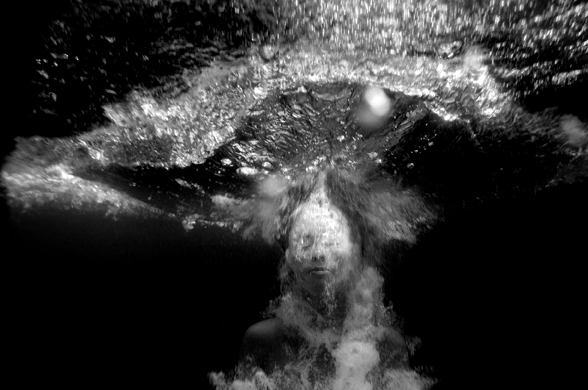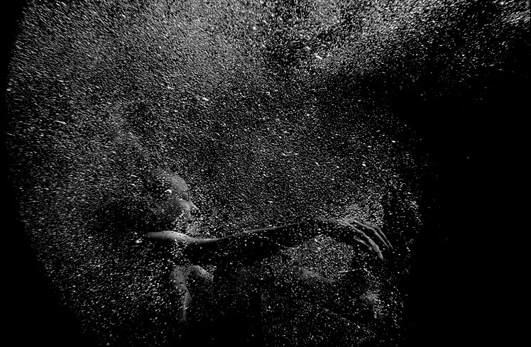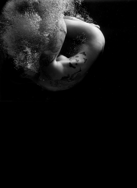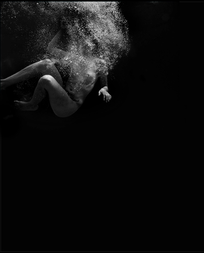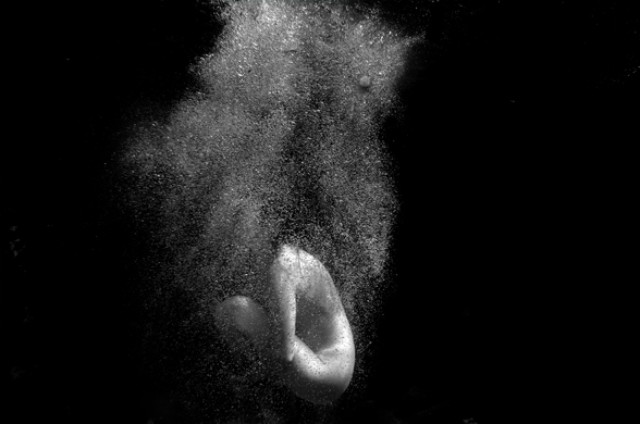 The Cannon Ball series evolved out of photos I took to explore the nature of confinement, both physical and psychological. I used large pieces of plexi-glass to contain my subjects under water. While this process resulted in some beautiful images of the human form, I was surprised to discover an even more powerful sense of beauty resulting from the models process of coming to grips with their loss of control. And just as the models lost control of their bodies, their facial expressions, their pose, I lost control of the standard items in the photographer's toolbox - lights, crews, verbal direction, repetition of shots, or even the benefit of real underwater camera housing, which was too bulky and cumbersome for use in this series. The real beauty of the Cannonball series comes from that fact that the models aren't floating or at peace at all. Rather, they are hurling their bodies through the water as is seen in their skin, muscles, and faces and in the bubbles created as their bodies pierce the water. What I found during that process was the freedom that comes from capturing what cannot be manipulated. In the end I had to accept the unpredictability that comes with two people plunging into the unknown.