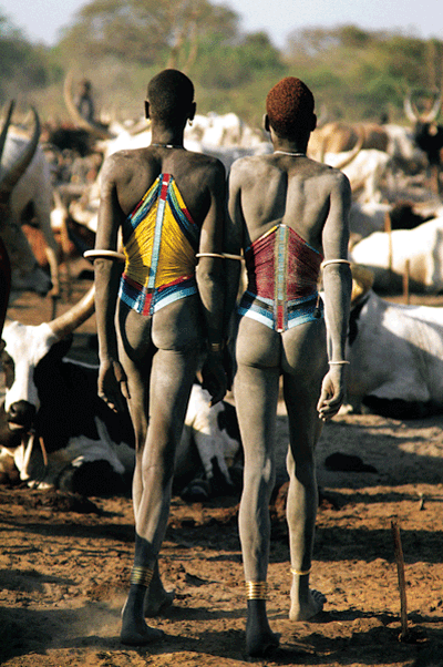 TWO DINKA MEN WITH CORSETS, SOUTH SUDAN
