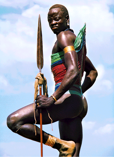 DINKA WARRIOR WITH SPEAR, SOUTH SUDAN,