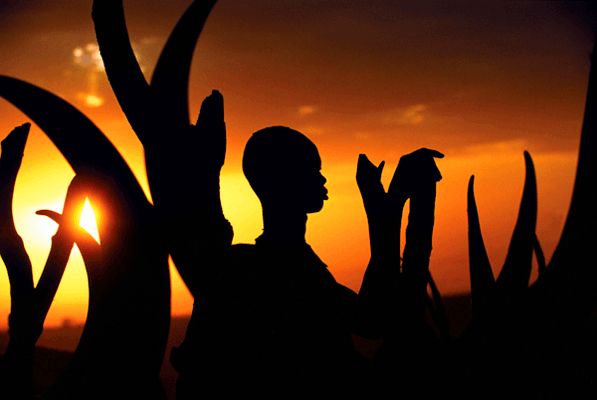 SILHOUETTE OF DINKA MAN WITH HORNS, SOUTH SUDAN