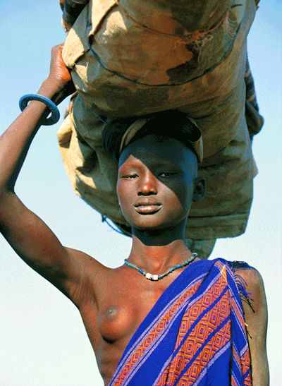 DINKA WOMAN CARRYING LOAD, SOUTH SUDAN