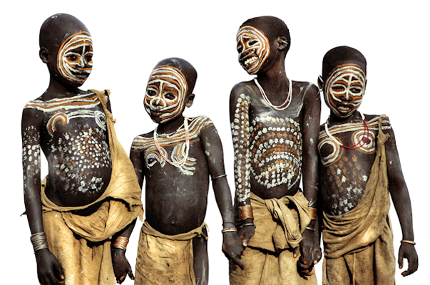FOUR PAINTED SURMA GIRLS, ETHIOPIA