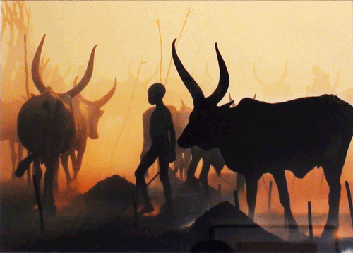 DINKA CATTLE CAMP AT SUNSET, SOUTH SUDAN,
