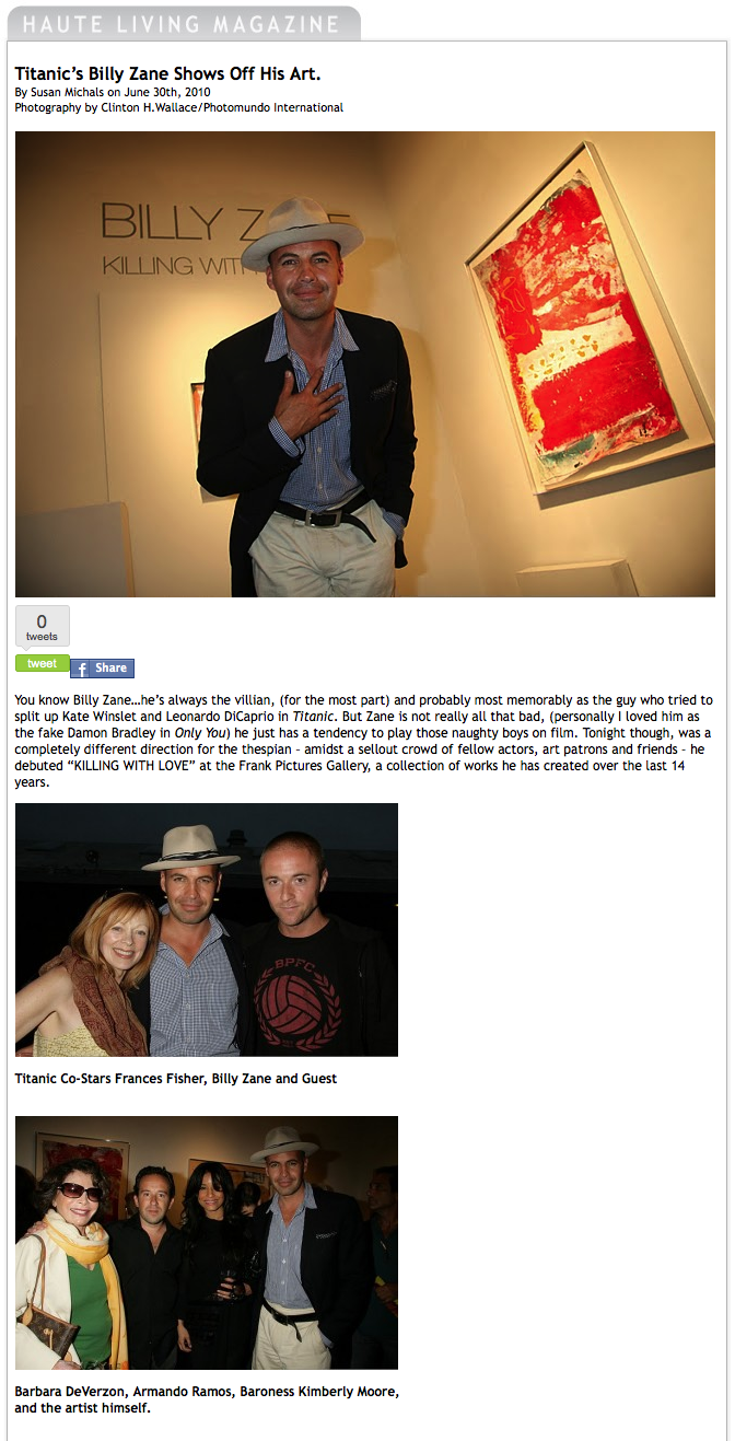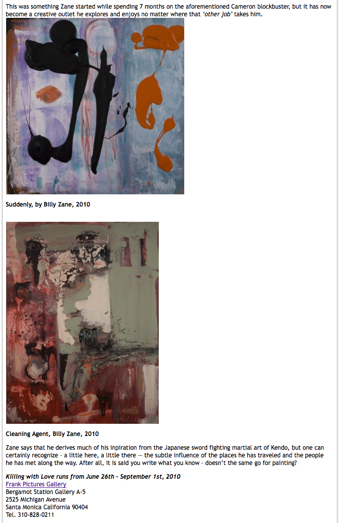 Billy Zane "Killing With Love" June 26th - September 1st, 2010