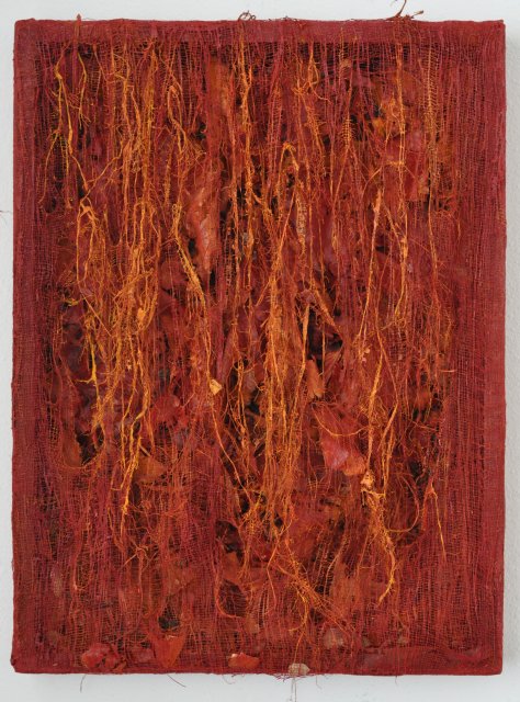 Red Alert, Paper terry cloth and paint mounted on canvas. 48x36x3" 2009