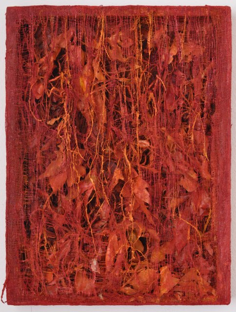 Full Cycle, Mixed media on canvas, (seeds,leaves,dirt & nylons) on Panel 96x96" diptych 2007