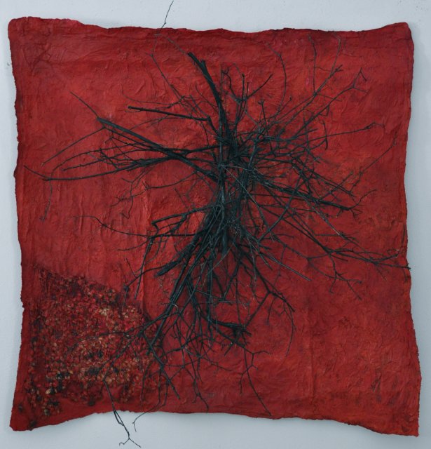 Untitled, Wood paper pigment shells on cotton ,approx. 60x60x24" 2009