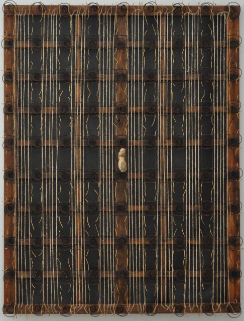 Earth Music, Box-spring,Tar paper,twine&paint.72x60x9.5" 2009