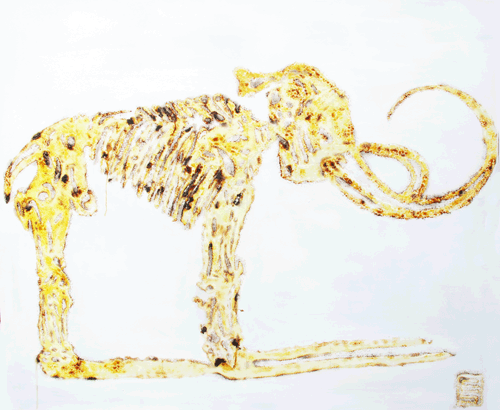 Extinct?, 72" x 60", burnt sugar, acrylic and resin on canvas, 2012