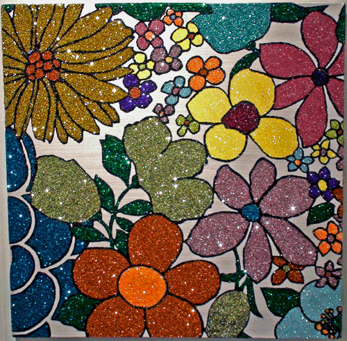 Hippie Flowers, acrylic & glitter on canvas, 24" x 24", 2012