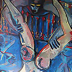 Hermann Lederles new show of his paintings at Frank Pictures Gallery is a body of selected works from 1987 to the present. Through the blizzard of paint, Lederle evolves the history of his art: the quick charcoal life drawings of his years at the San Francisco Art Institute, their transformation into his blurred oil stick paintings, to his discovery of gold leaf, with its definite high contrast surface, applied in grids that literally trap his expressionistic figures bodies, faces, fish and birds -- within a pattern of golden pixels. I dont capture what I see, he says, I capture what I feel I see. In his white paintings, Lederle continues to deal with the figure, liberating and imprisoning it simultaneously, and then sending it into dynamic, turbulent motion through the introduction of circular layers atop the gold-leaf grid, playing background against foreground in a perpetual tug-of-war with the eye of the viewer. His paintings shift and transform with fluctuations in the light, and the hidden figures, fighting for air, for space, for dominance -- a pentimento forgotten images, surfaces, feelings and music set free as much by what Lederle leaves out as by what consciously has placed there. If you really abstract a shape so much, says Lederle, the imagination of the viewer does the work. I dont want to impose a message on my paintings. I see them as a catalyst. The images I want you to see in what I do are your own.