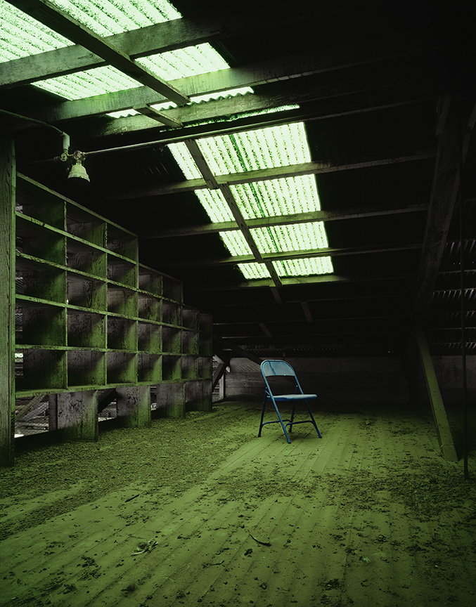 Photographed in abandoned industial structures in California's Central Valley, the images of "Quiet Apocalypse" capture a paradoxical moment of decay and growth, when human constructions return to nature furthering my interest in making the ugly beautiful, rather than capturing an already appealing image. Vivid colors and deep focus draw the viewer into the spaces, where the rotting subject becomes fragile, and like all human endeavors is subject to inevitable decline and decay. Color enhancement is held to a minimum; rather I strip away distracting colors to focus the scene on my impression rather than reality.