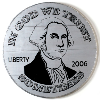 In God We Trust Sometimes 2005 Oil Painting w/ wood and metal 44" Round