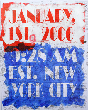 Don't Panic 2005 Acrylic and collage / mixed media 60" x 72"