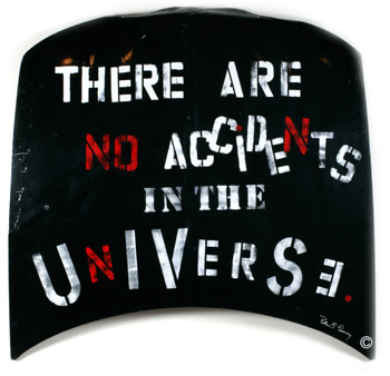 There Are No Accidents In The Universe 2005 Oil paint on car hood 60" x 63"