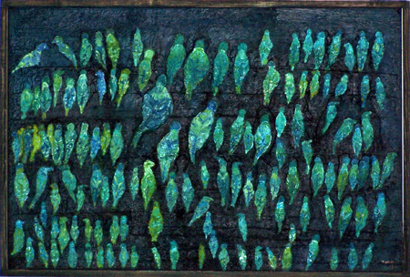 Mixed media, seeds, leaves, sand on panel