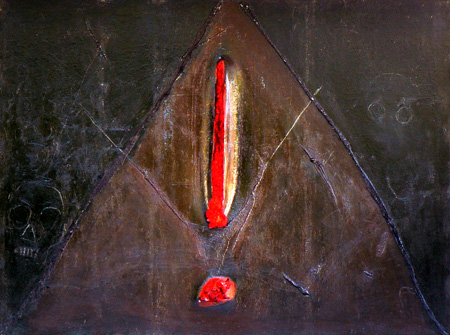 Mixed media, sand on panel