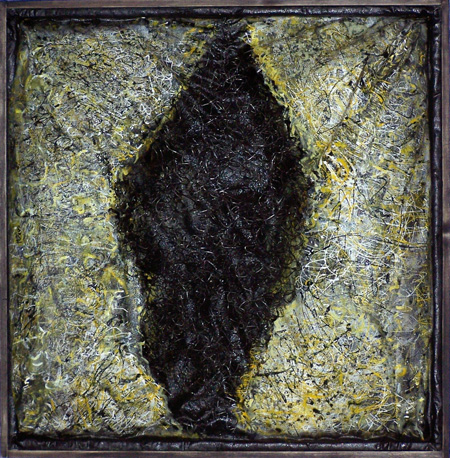 Mixed media, cardboard on panel