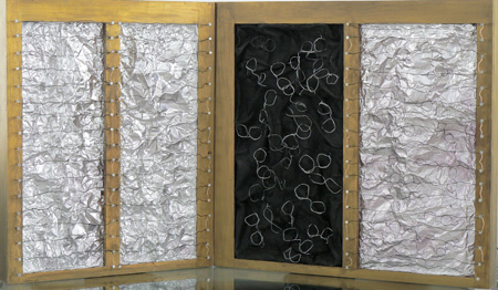 Mixed media, foil on panel