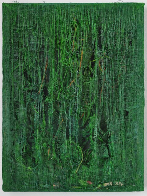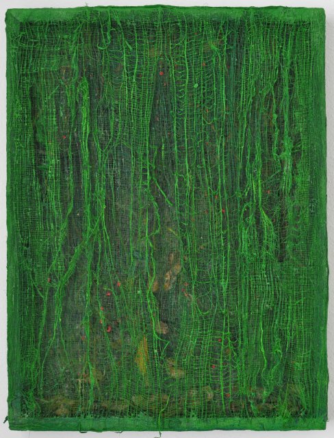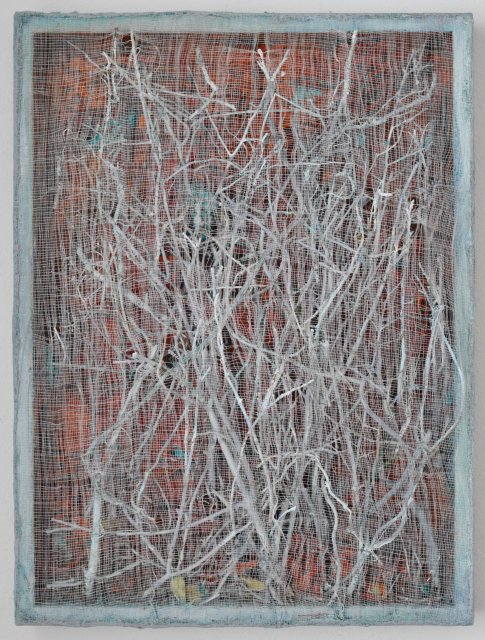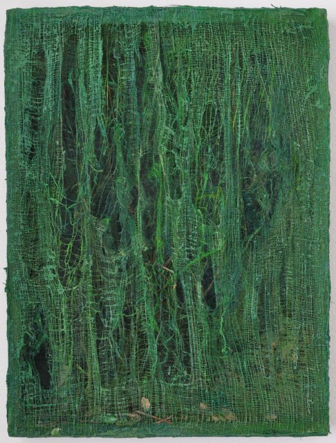 Full Cycle, Mixed media on canvas, (seeds,leaves,dirt & nylons) on Panel 96x96" diptych 2007
