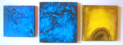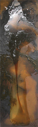 Oil, Fixall, Rice Paper, Fabric, Varnish on Panel