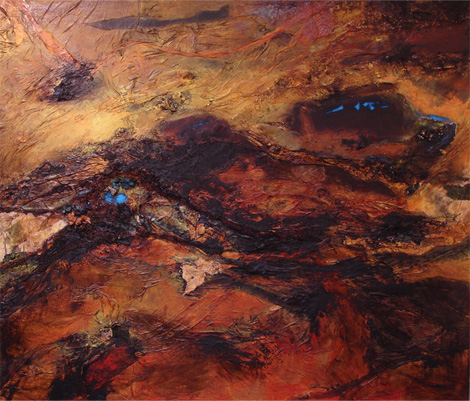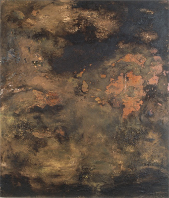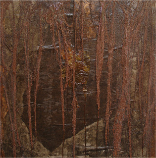 Oil, Tar, Fiber, Pigment, Steel Wool, Varnish, Rice Paper on Panel