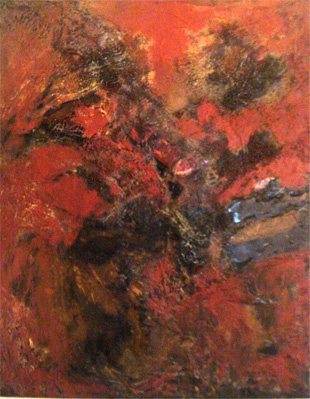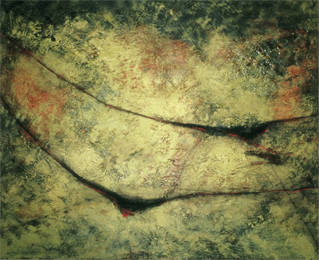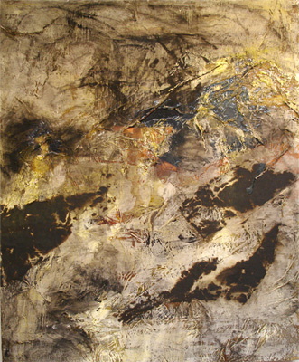 Oil, Varnish, Rice Paper, Fiber on Panel