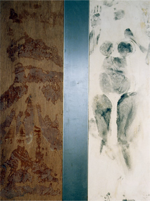 Japanese Rice Paper, Steel, Varnish, Coal Dust on Panel